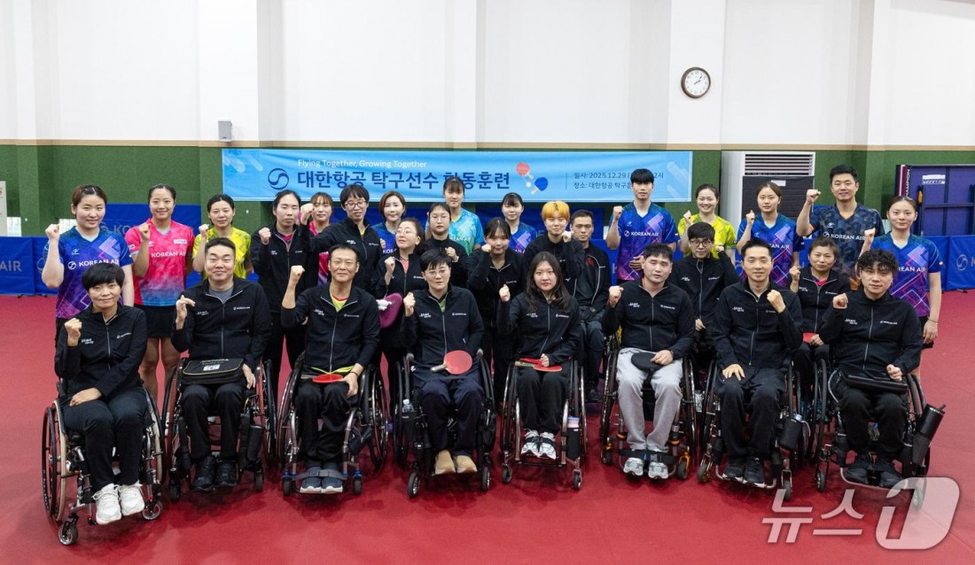 대한항공 여자탁구, 장애인 선수들과 합동훈련…간판 신유빈 참석